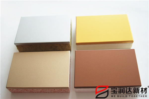 寶潤達一體板飾面層采用真石漆,多彩漆,水包水,水包砂,乳膠漆,實色/金屬氟碳超3000種顏色定制,可根據石材定做樣品